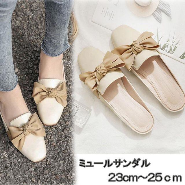 商品名:ミュールサンダル リボン ミュールパンプス ポインテッドトゥ スリッポンサンダル 美脚 フラットタイプ シューズ ミュール スリッパシューズ(宅急便のみ対応)