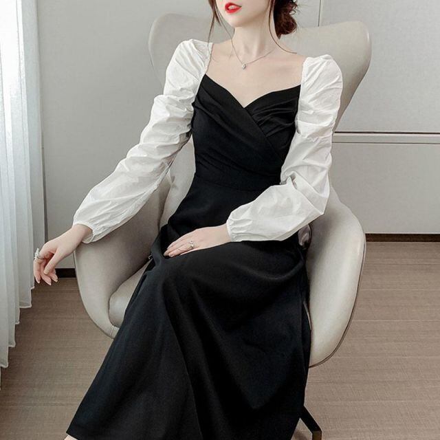 商品名:ワンピースvネック ロングフレアワンピース レディース ひざ下 大人 きれいめ 無地 おしゃれ オフィス(メール便送料無料)