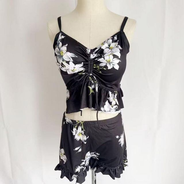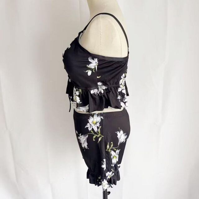 商品名:水着 花柄 上下3点セット ビキニ 体型カバ タンキニ セパレート 長袖 トップス レース ノンワイヤー 大人 おしゃれ みずぎ ミズギ(メール便送料無料)