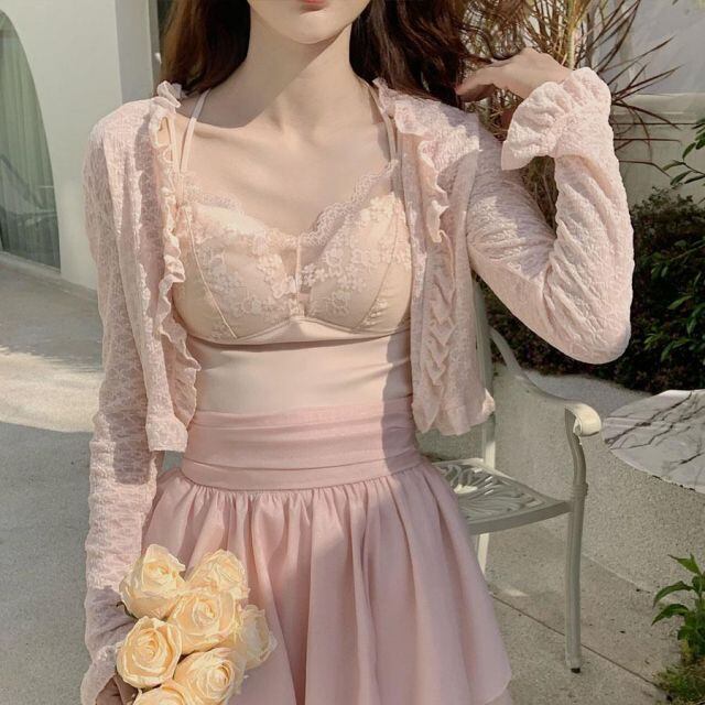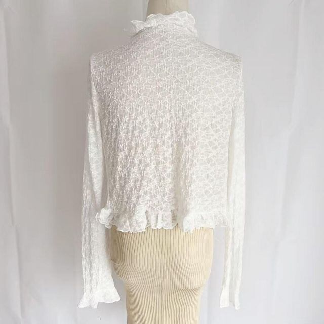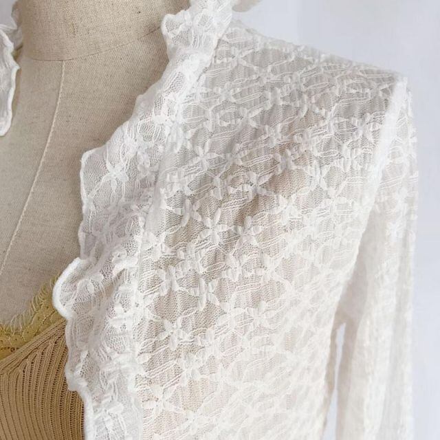 UVカット カーデ Vネックサマーカーディガン 透かし編み 薄手 カーディガン トップス 長袖 ショート丈 前開き 透け感(メール便送料無料)