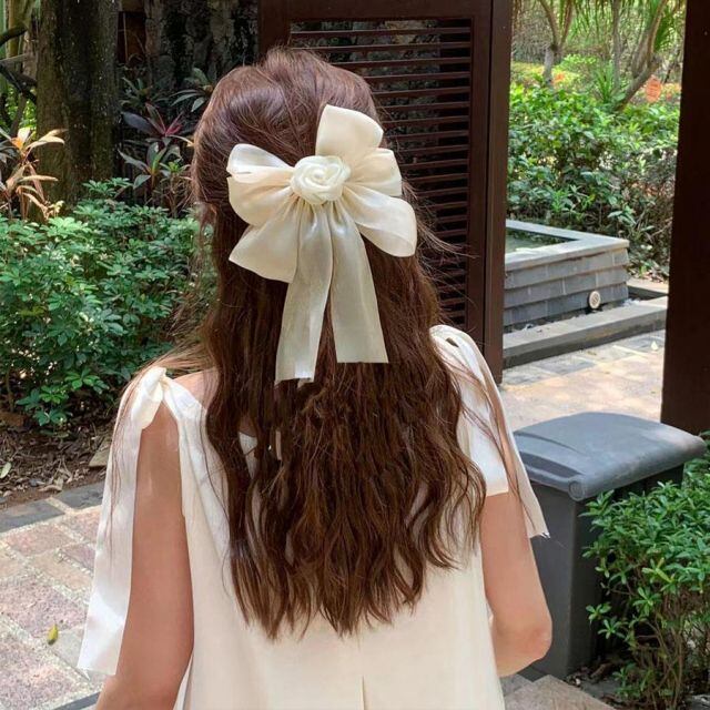 ふんわり立体的で動きのあるリボンモチーフのヘアバレッタ。
