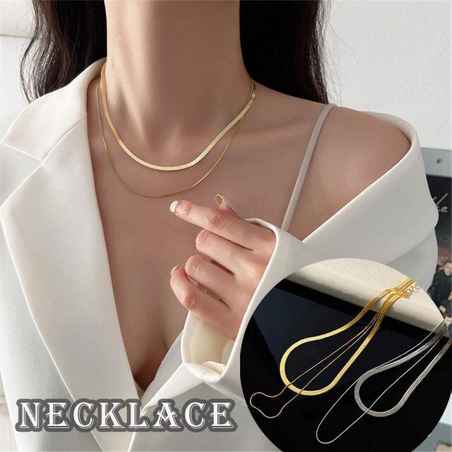 2ラインの長さの異なるチェーンが首元を華やかに演出してくれます。