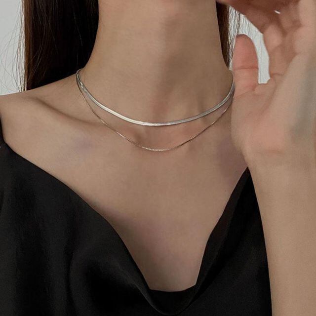商品名:太幅チョーカー 重ねつけ風ネックレス 2連チョーカー オシャレ キラキラ 首飾り フェミニン(メール便送料無料)