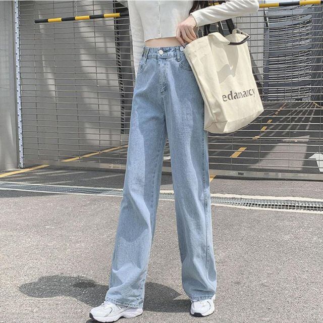 美脚ストレートパンツ 着やせ セミワイドパンツ ボタン調整 ジーパン 高く見え ロングズボン オシャレ カジュアルパンツ ボトムス体型カバー(メール便送料無料)
