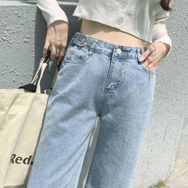 商品名:美脚ストレートパンツ 着やせ セミワイドパンツ ボタン調整 ジーパン 高く見え ロングズボン オシャレ カジュアルパンツ ボトムス体型カバー(メール便送料無料)