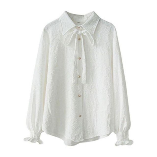 商品名:白ブラウス 春 シャツ レディースリボン付きシャツ オフィスカジュアルトップス 韓国風(メール便送料無料)