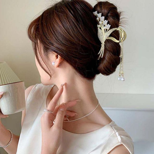 簡単に髪をまとめられ、大人上品な後ろ姿を演出。