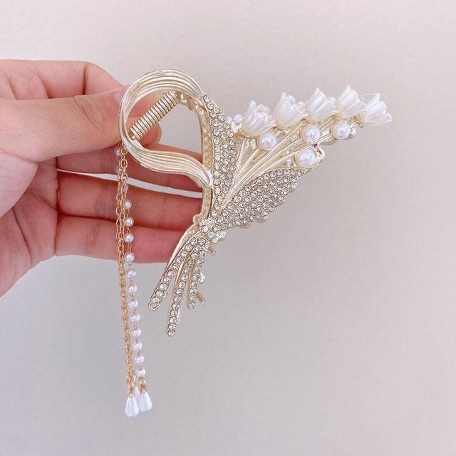 ヘアクリップ ゆらゆらチェーン付き 髪留め 髪飾り バレッタ フラワー 蝶ヘアアクセサリー オシャレ上品 パーティー飾り(宅急便のみ対応)