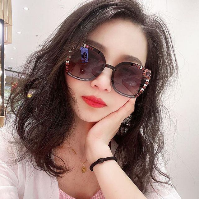UVカットサングラス ブラック フレームレス 紫外線カットラインストーン 眼鏡 メガネ 小顔効果 大きめ 軽量 韓国風トレンド(宅急便のみ対応)