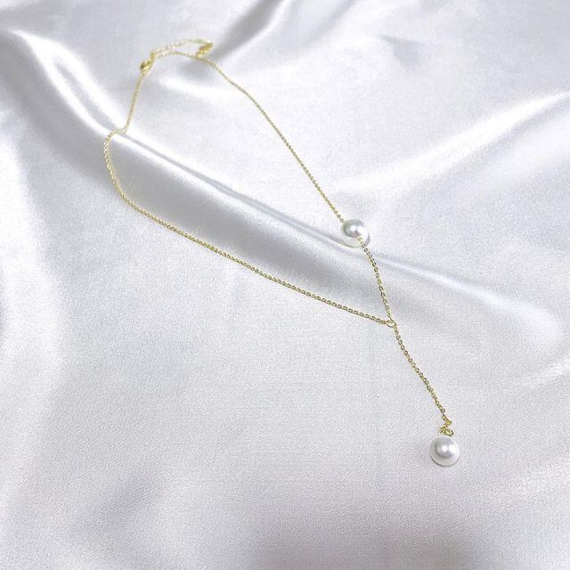 商品名:ネックレス パール 2粒パール Y字ネックレス 上品 エレガント カジュアル きれいめ シンプル フェミニン 贈り物 自分へのご褒美 普段使い(メール便送料無料)