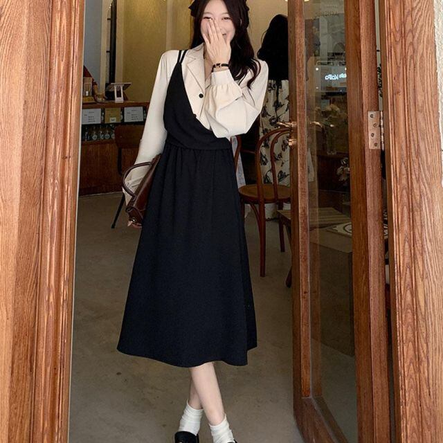 シンプルエレガントなレイヤード風ワンピース。