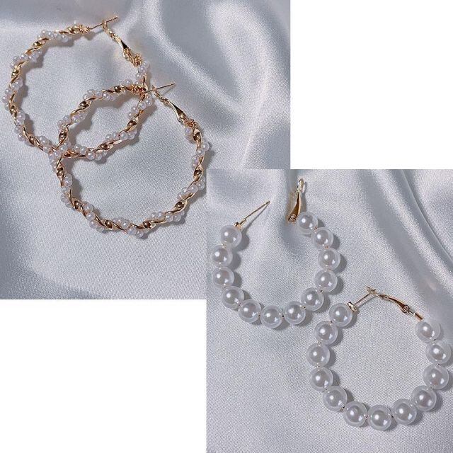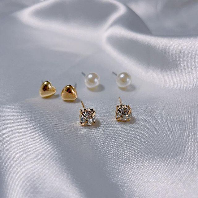 パール・ストーン・メタルボールのシンプルピアス6点セット。