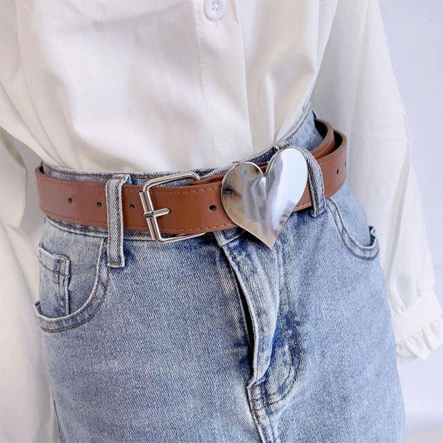 商品名:ベルト レディース ハートベルト 合皮 ウエストマーク シルバーデザインバックル オシャレ(宅急便のみ対応)