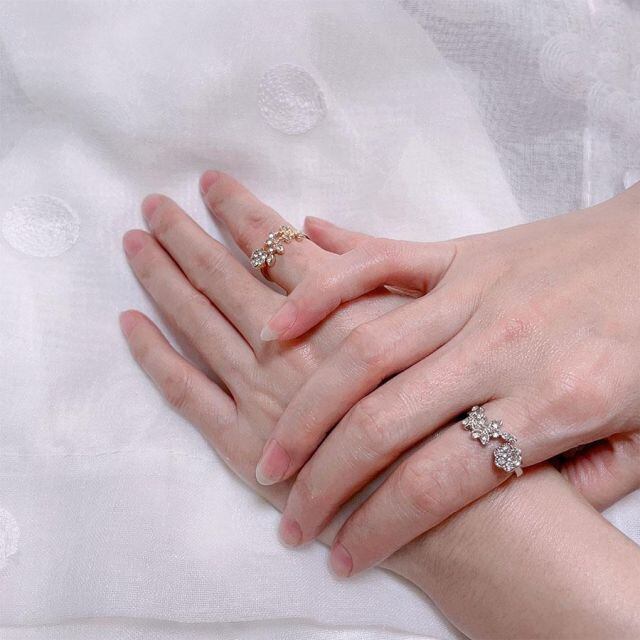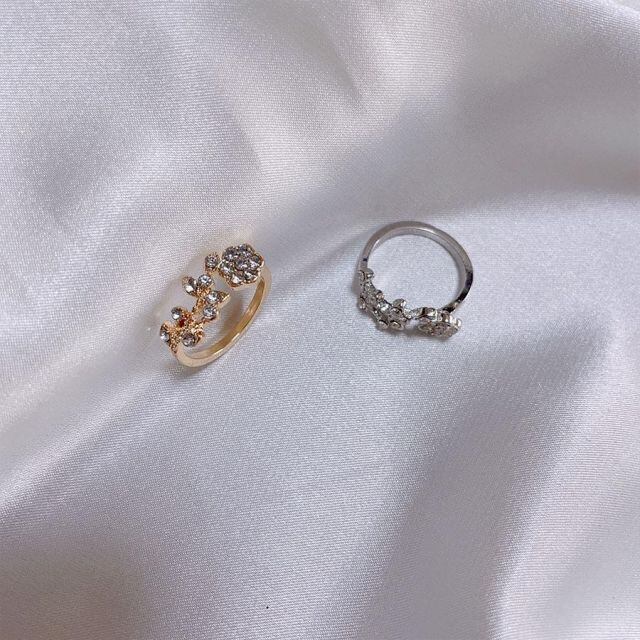 商品名:指輪 花デザイン オープンリング ラインストーン リング キラキラ フリーサイズ シンプル カジュアル 華奢 記念日 母の日(メール便送料無料)