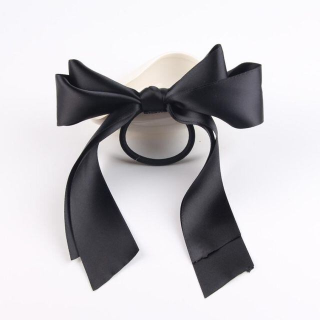 ふんわり立体的で動きのあるリボンモリボン付きのヘアゴム。