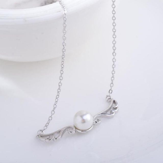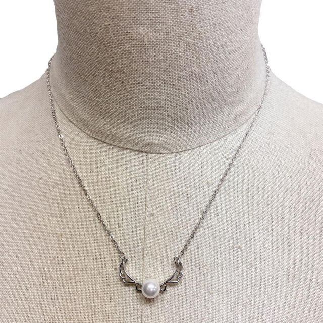 商品名:ネックレス パール チェーン 羽翼モチーフ シルバー アクセサリー 結婚式(メール便送料無料)