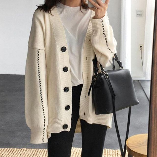 商品名:ニットカーディガン レディース ゆったり トップス 長袖 ショート丈 アウター 新作(宅急便のみ対応)