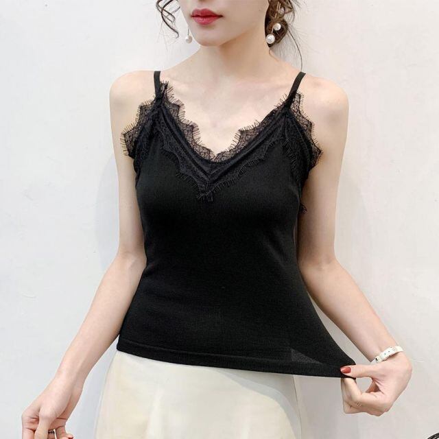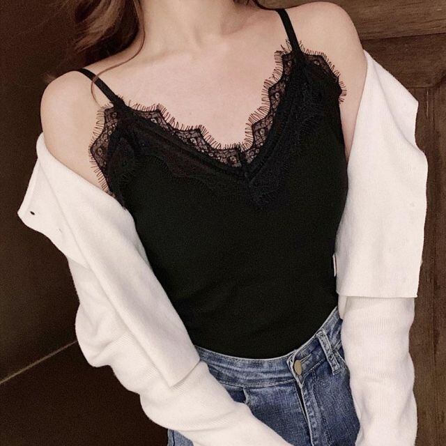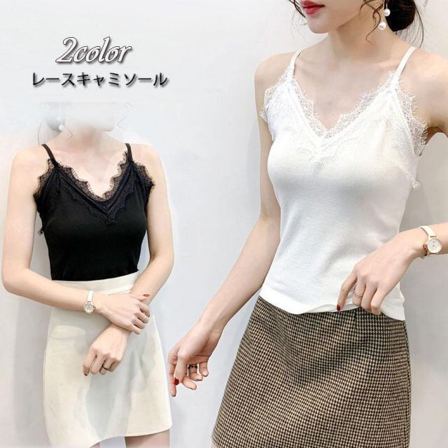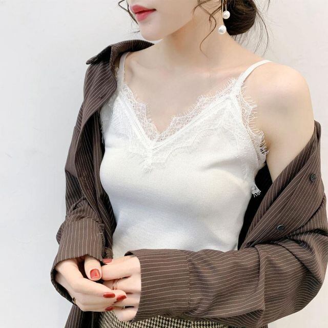 商品名:インナー キャミソール レース タンクトップ レディーストップス 花柄レース 肌着 下着 Vネック レース 大人 シンプル(メール便送料無料)