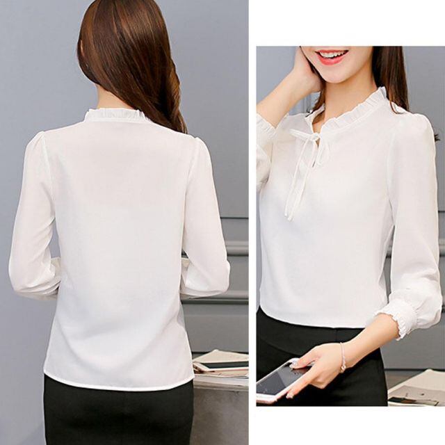 商品名:ブラウス レディース トップス シャツ シャツブラウス 白 フリル リボンシャツ 長袖 無地 上品 おしゃれ オフィスカジュアル フォーマル(メール便送料無料)