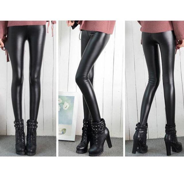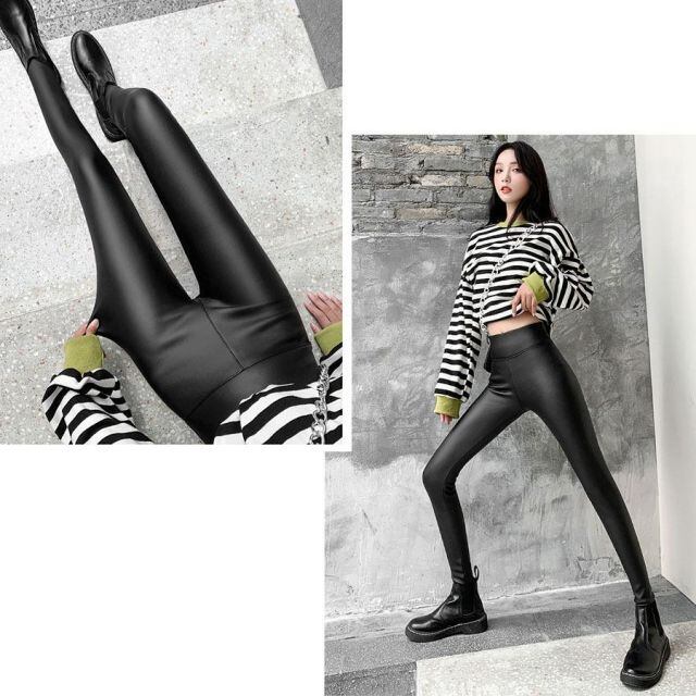裏起毛で柔らかいストレッチ素材のフェイクレザーレギンス。