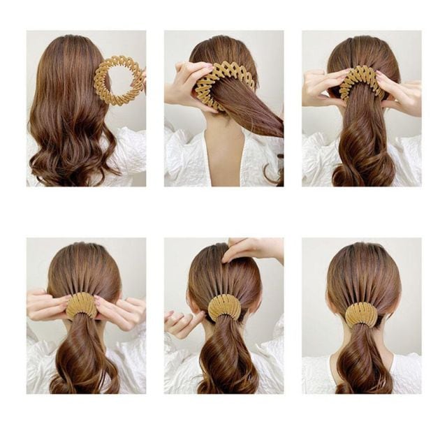 リングを開き髪の毛を通し、ぎゅっと縮めるだけの簡単装着。