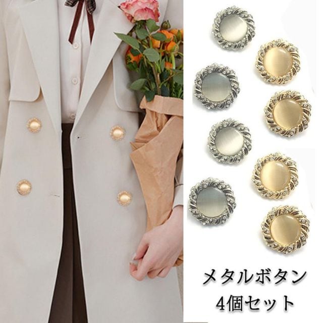 商品名:メタルボタン 4個セット 18mm 金属ボタン スタンダードボタン 手芸 素材 プラボタン 手作り ハンドメイド アレンジ リメイク(メール便送料無料)