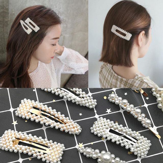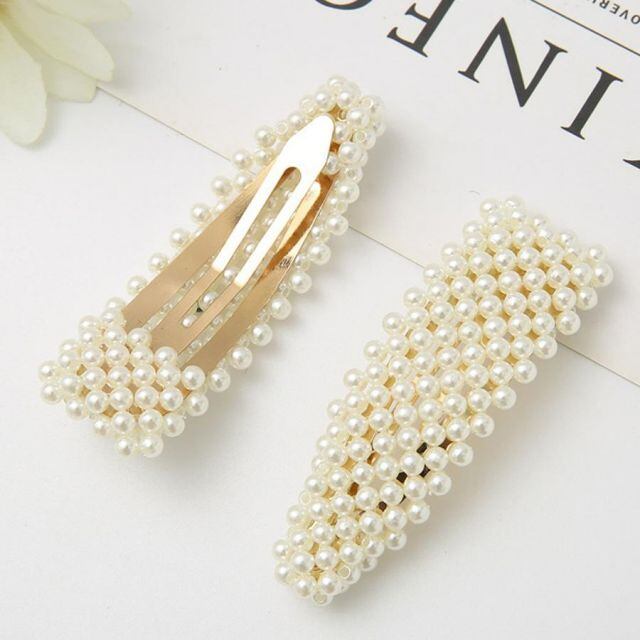 商品名:ヘアピン パッチン留め ヘアクリップ バレッタ 髪どめ 髪留め ヘアアクセサリー 白 パール風 真珠風(メール便送料無料)