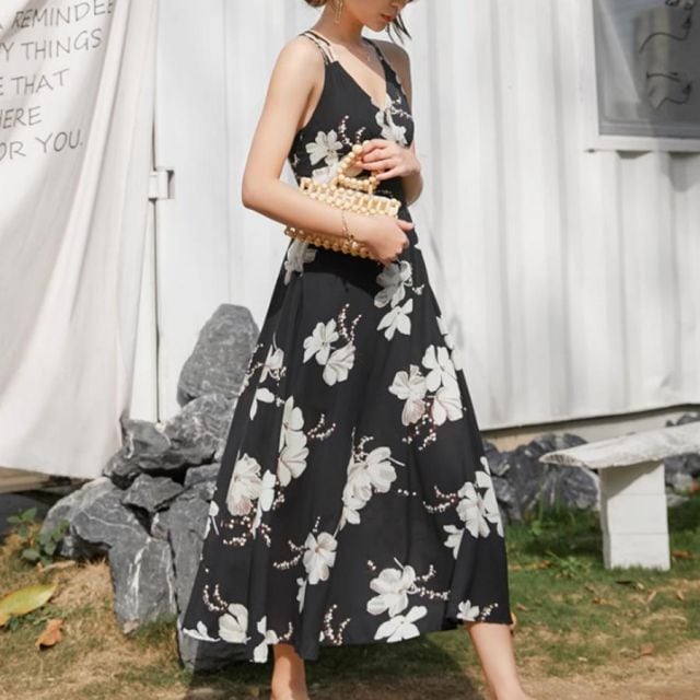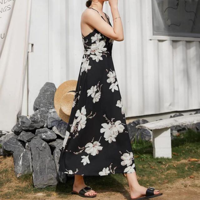 エレガントで上品なフラワー柄キャミソールワンピース。
