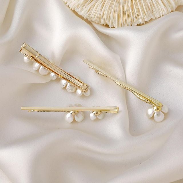 商品名:ヘアピン 花クリップ パッチン留 ヘア留め前髪 かわいい ゴールド オシャレ 髪飾り 上品 パーティー飾り(メール便送料無料)