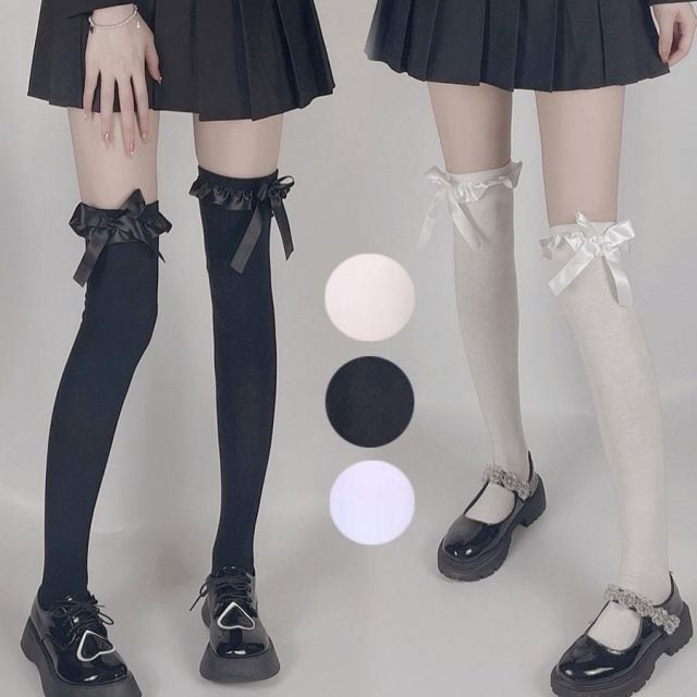 蝶結びリボンが付いたのがおしゃれポイントレディースハイソックス。