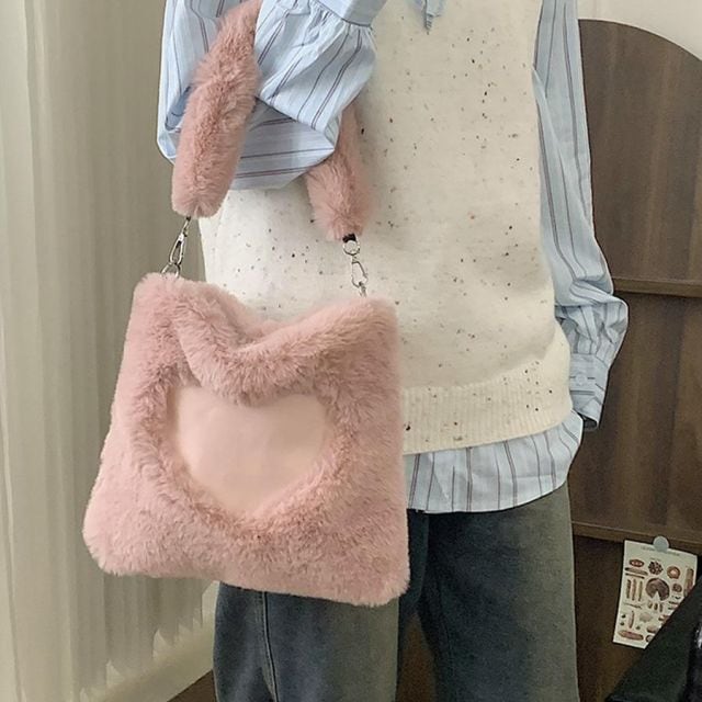 ファーバッグ ハート ミニトートバッグ 肩掛け 秋冬 女性 大人 レディース ばっぐ ママ 主婦 便利 折りたたみ 携帯やすい 手提げバッグ(宅急便のみ対応)