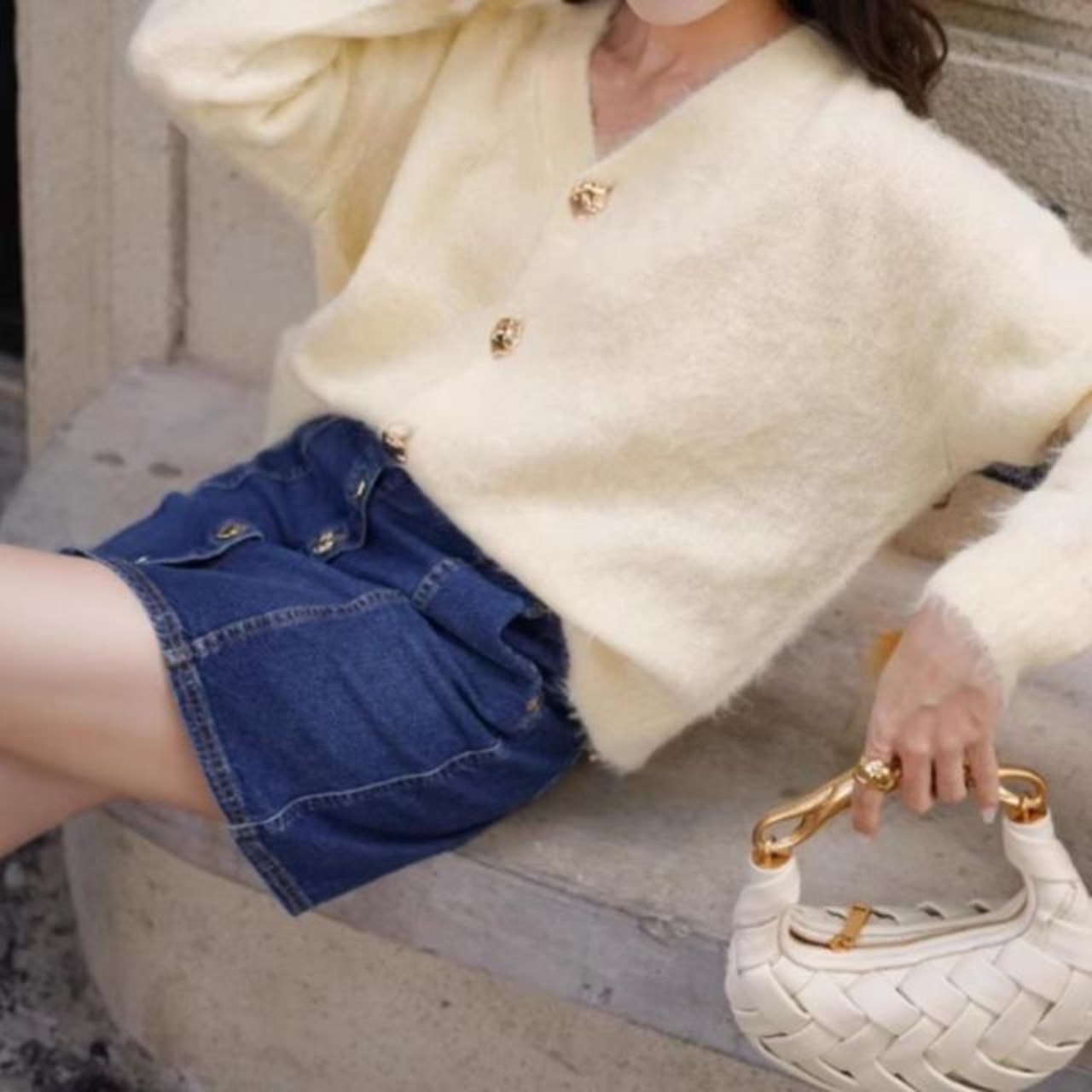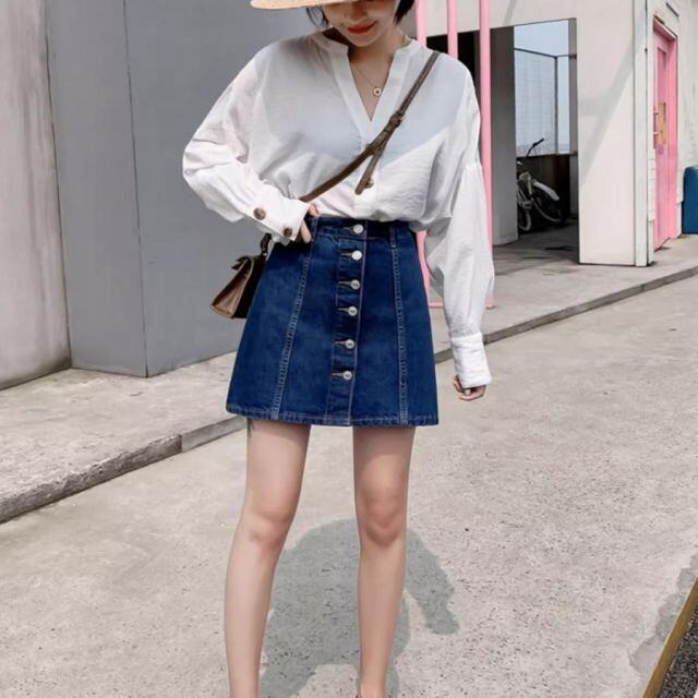 商品名:キュロットスカート デニム ミニスカート ボタン デニムスカート レディース ハイウエスト Aラインスカート 着やせ 膝上丈 台形スカート(メール便送料無料)