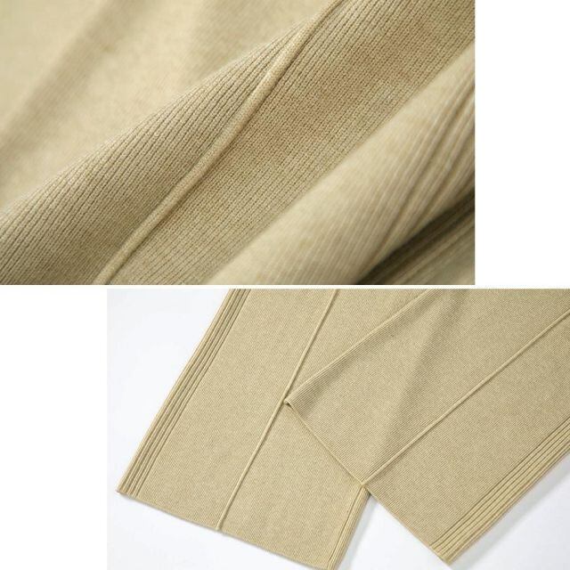 商品名:ニットパンツ リブニット ワイドパンツ フレアパンツ リラックスパンツ ウエストゴム ゆったり リラックス 秋冬パンツ ボトムス 美脚(宅急便のみ対応)