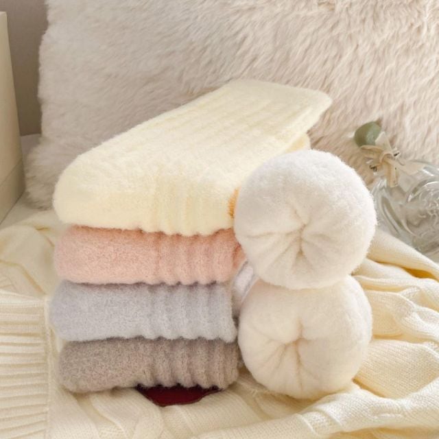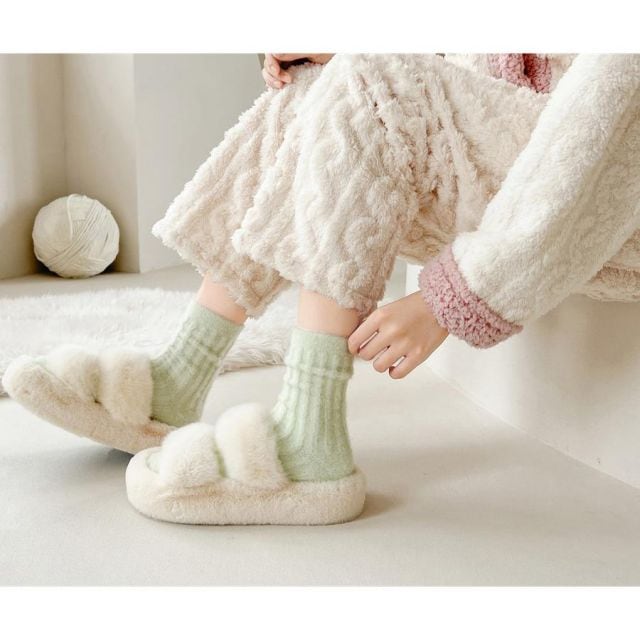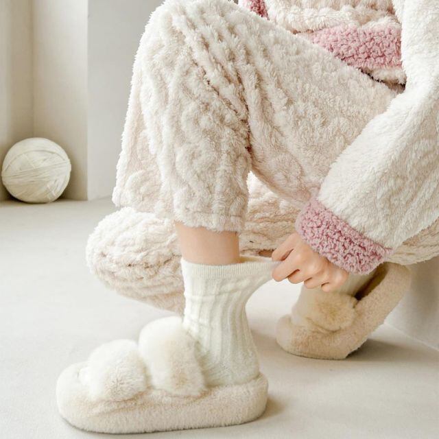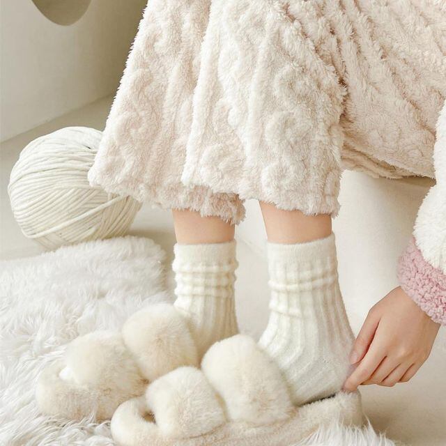 冷えとり靴下 クルーソックス 暖かい ファーソックス かわいい レディースくつ下 socks ホワイト 黒白 可愛い カジュアル女性 婦人 ソックス(メール便送料無料)
