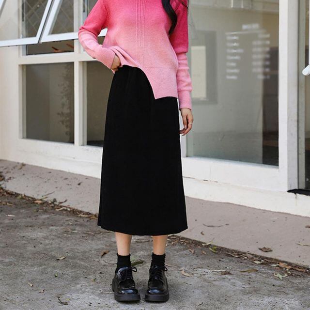 商品名:裏起毛スカート コーデュロイ バックスリット コーデュロイスカート ミディアム丈大人可愛い こなれ感 冬 おでかけ オフィス(宅急便のみ対応)