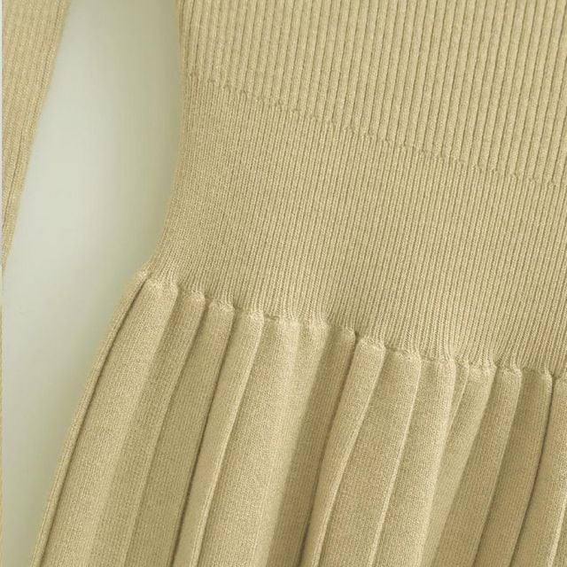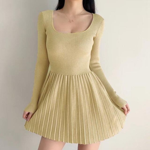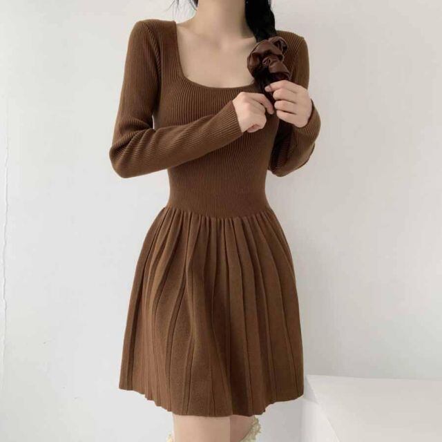 商品名:ワンピース レディース ニットワンピ ひざ丈 Aライン リブニット インナーワンピース ニットセーター ロングセーター 無地 リブ編み(宅急便のみ対応)