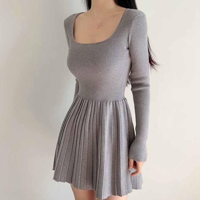 スクエアネックデザインがデコルテをきれいにみせてくれる、大人っぽい印象に仕立ててくれる。