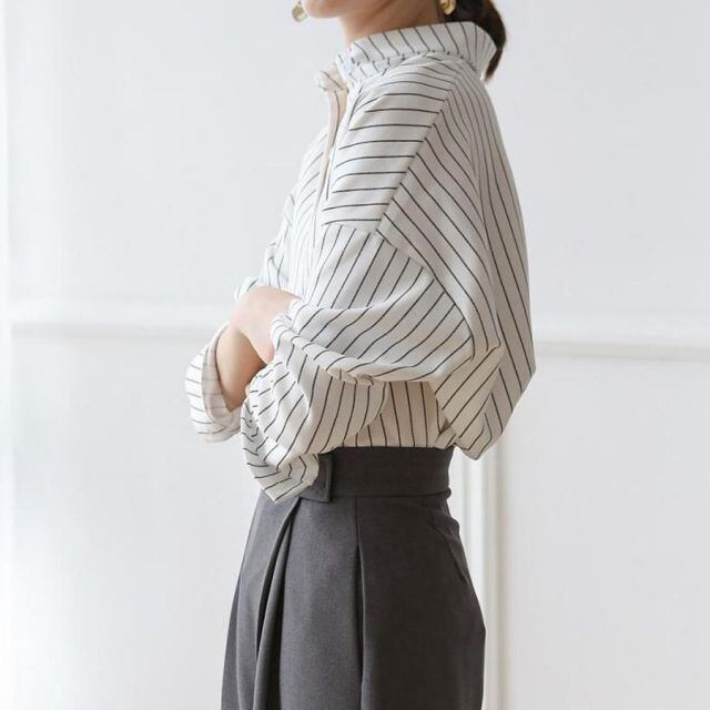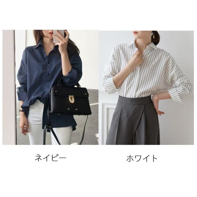 商品名:シャツ ブラウス レディース トップス 襟付き シャツブラウス ボーター柄 長袖 おしゃれ 韓国風 フォーマル 通勤OL(メール便送料無料)