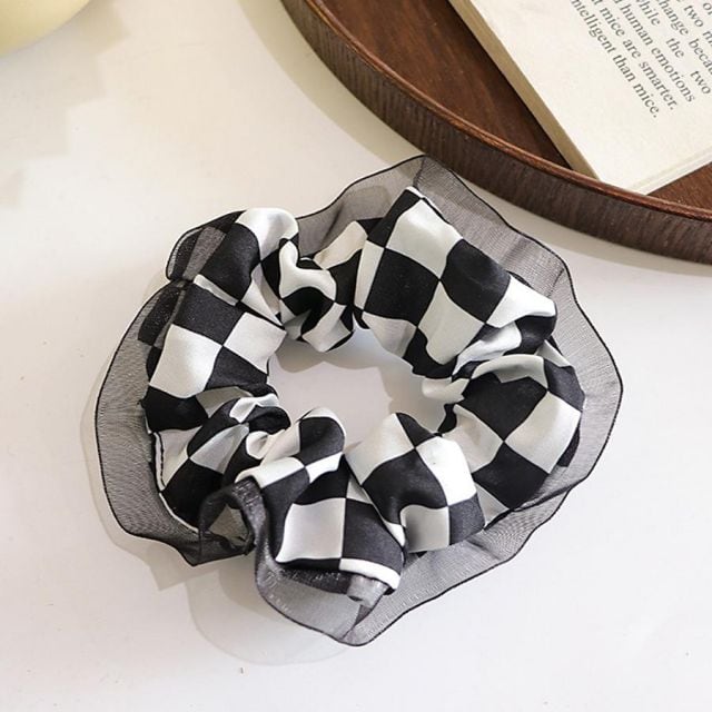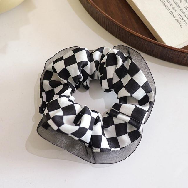 チェック柄がおしゃれでかわいいシュシュヘアゴム。