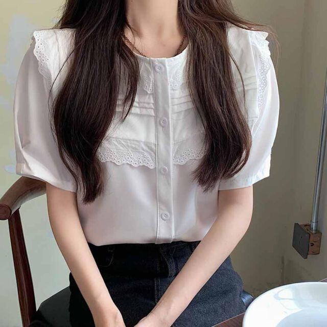 上品なレースでカジュアルにもガーリーにも着こなせるブラウス。