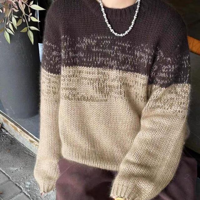 商品名:ニットセーター カラーグラデーションニット レディース 長袖 秋 冬 レトロ 白 黒 クルーネック 薄手 細身デイリーニット 長袖 ニット(宅急便のみ対応)