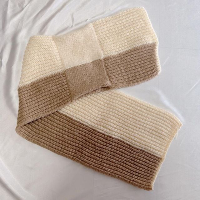 おしゃれなバイカラーデザインニットマフラー。