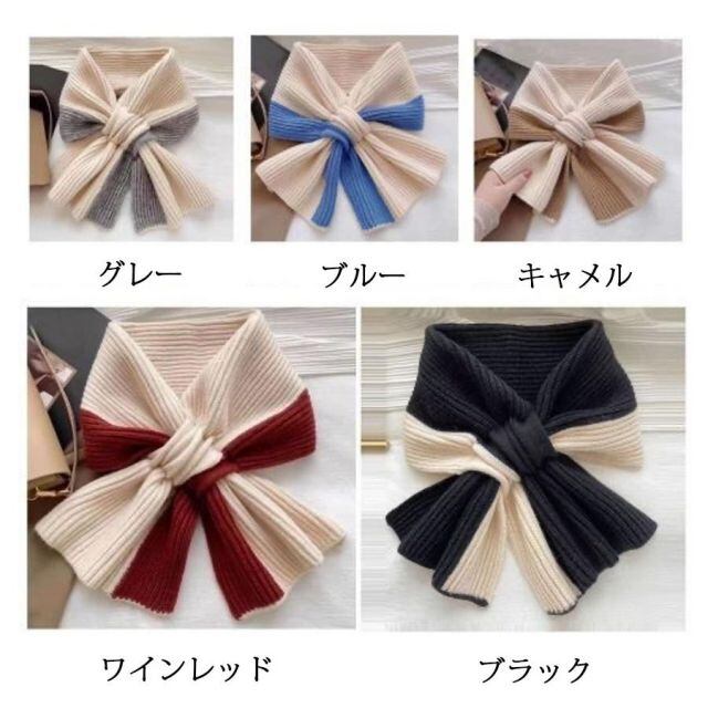 商品名:ニットマフラー 差し込み バイカラー レディース メンズ ネックウォーマー ティペット ストール リボン 大人 可愛い 暖かい 秋冬 柔らかい(メール便送料無料)