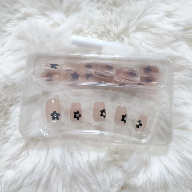 ネイル用の接着剤による装着の場合、接着剤を爪の表面に塗り、ネイルチップをその上から張り付けます。