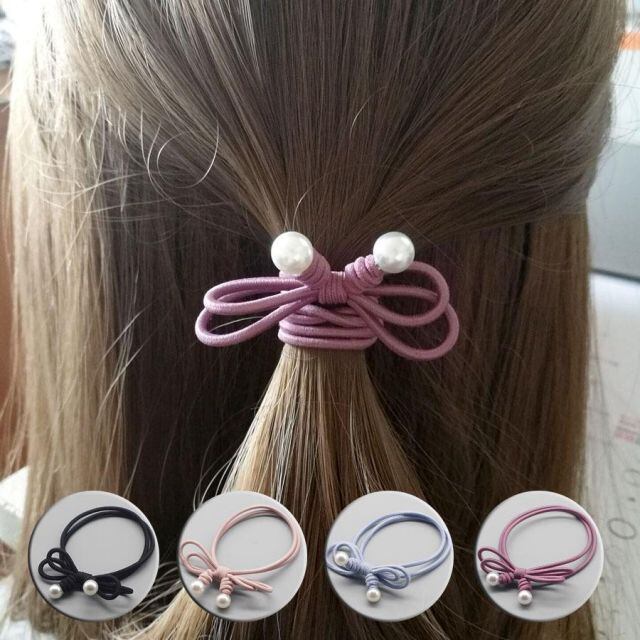 商品名:ヘアゴム パール おしゃれ 2連髪留め ヘアアクセサリー リボン結び シンプル(メール便送料無料)