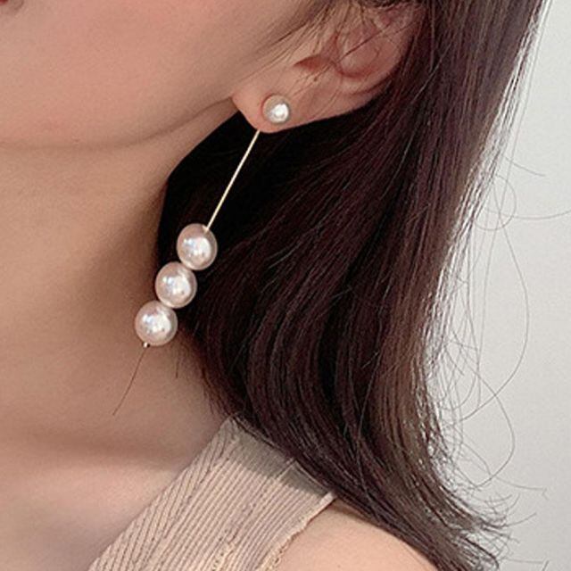 商品名:ピアス パール ロング 揺れる 大ぶりイヤリング左右非対称 かわいい(メール便送料無料)