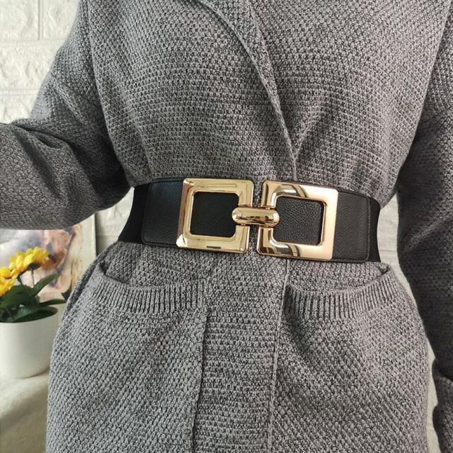 商品名:ゴムベルト 4タイプ バックル付レディース 幅広 太ベルトバックル付 細見え ラクチン おしゃれ(メール便送料無料)