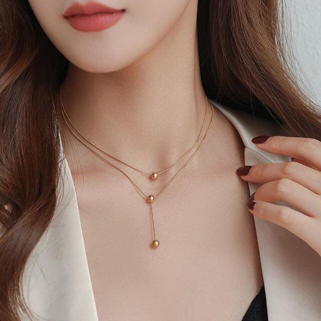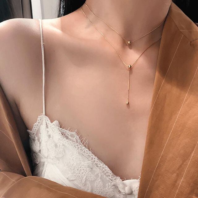 シンプルな細めチェーンチョーカーは、首元を華奢にすっきりと見せてくれる。
