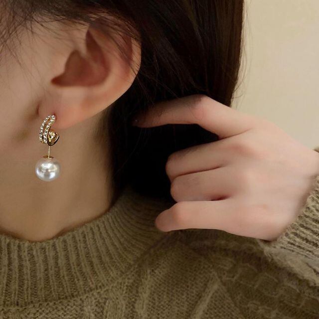 揺れるピアスで可愛らしく、フェミニンな印象を高める。