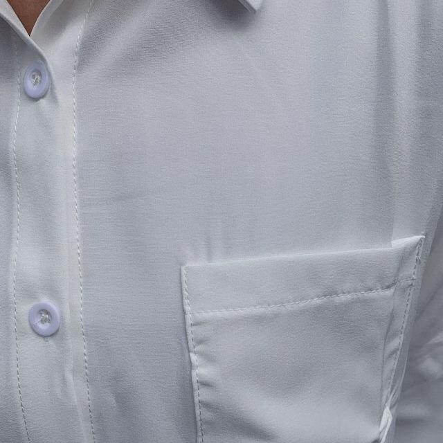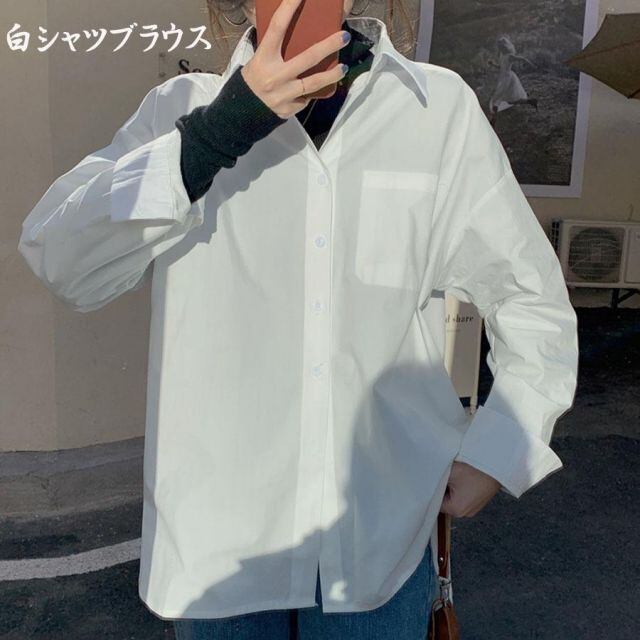 商品名:白ブラウス シャツ レディース トップス ロング 襟付き シャツブラウス Vネック 長袖 おしゃれ 韓国風 フォーマル(メール便送料無料)